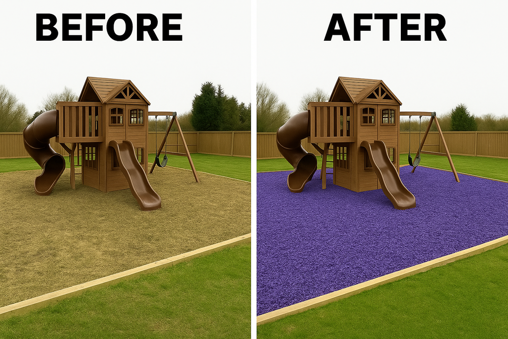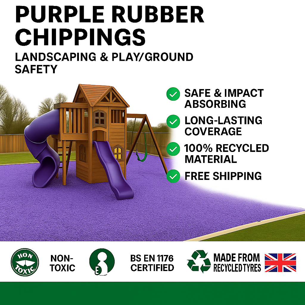 Bring lasting colour and safety to your outdoor spaces with Slip-Not Premium Purple Rubber Chippings — a modern alternative to bark mulch and gravel.
