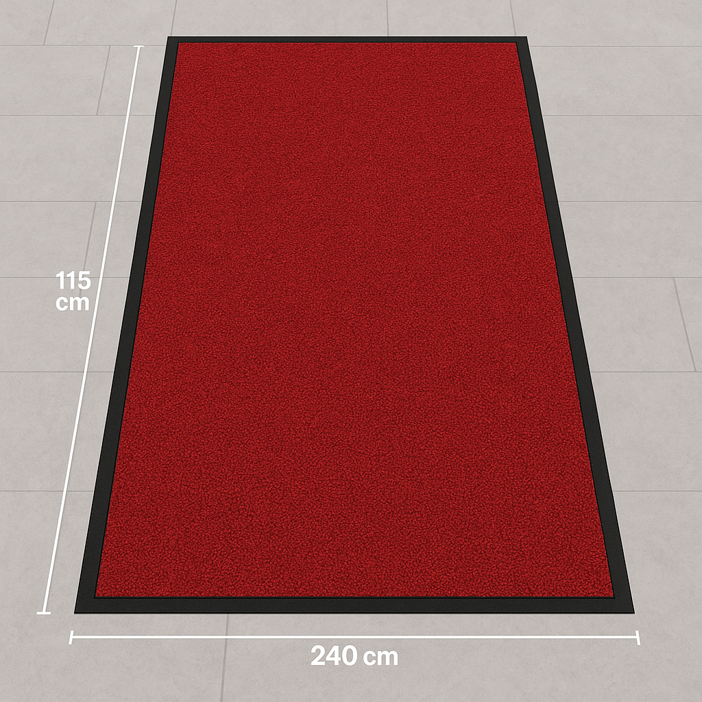 - Custom sizes and colours – Standard sizes range from 60 × 85 cm up to 115 × 240 cm. We can produce custom mats up to 150 cm wide × 700 cm long and offer black, red and grey colours to suit your décor.